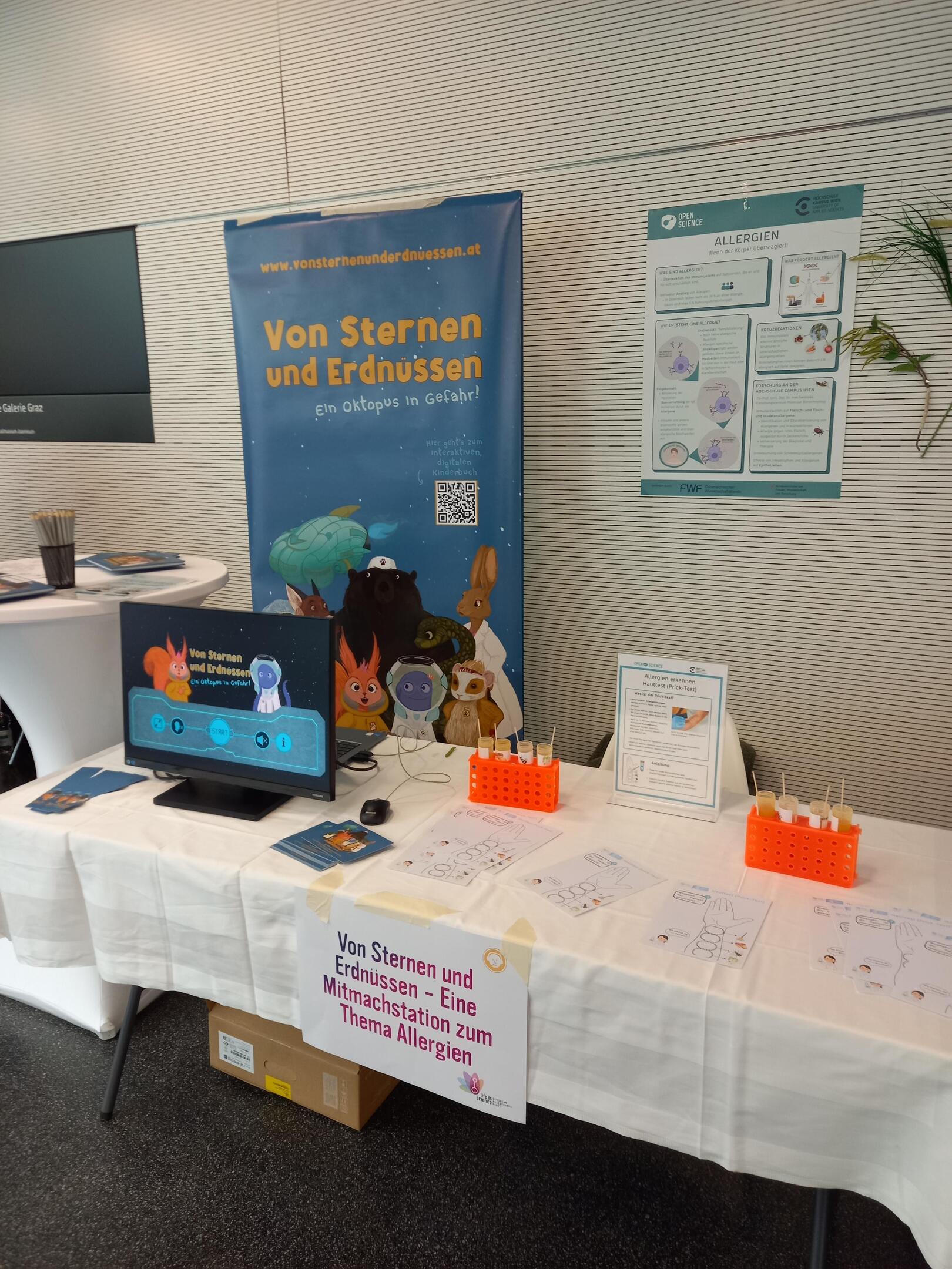 Heuer waren wir gemeinsam mit der Hochschule Campus Wien mit einer Mitmachstation zum Thema Allergien im Universalmuseum Joanneum in Graz mit dabei. Zahlreiche Besucher:innen nutzten die Gelegenheit, mehr über das Thema zu erfahren und selbst aktiv zu werden – das große Interesse hat uns sehr gefreut.
